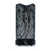 A unique hand-crafted metal aromatherapy diffuser with a faux flame candle feaure. Its black design is patterned after the beautiful strong-lined patterns of Morocco, topped with a faux flame. Warm white, and color rotating lights add more exotic flare.